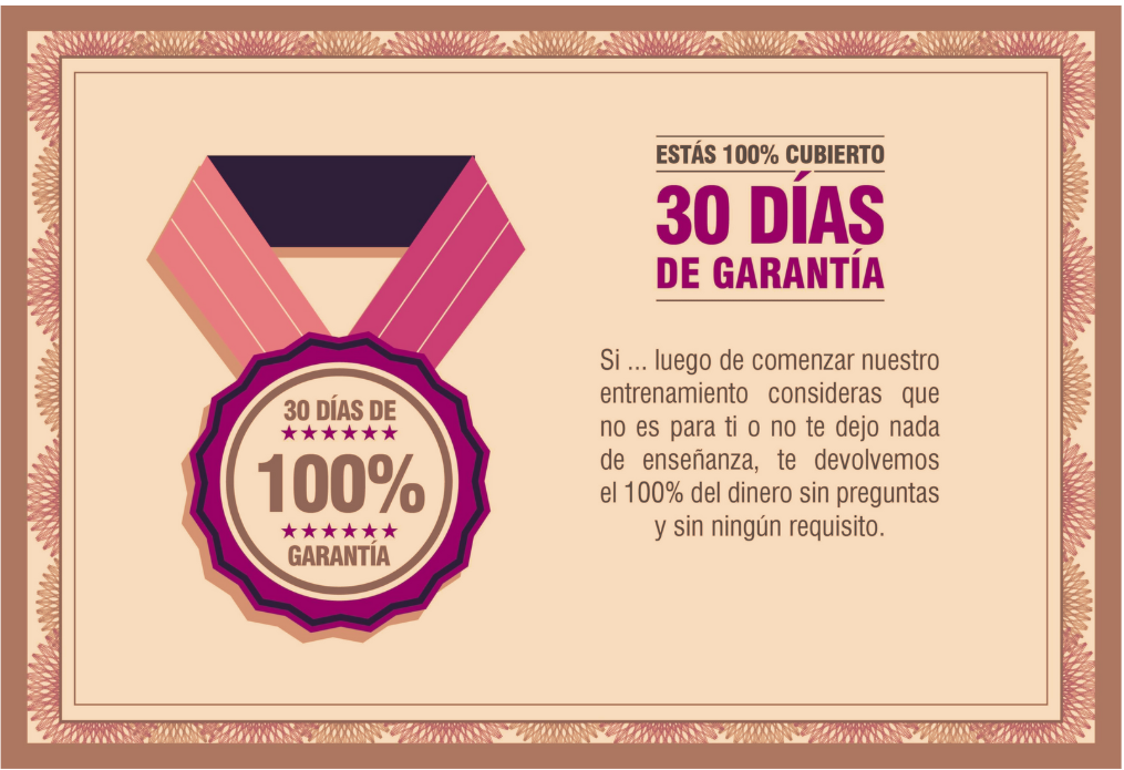 Tenés 30 días para probar, y si no cumplimos con la promesa formativa o no es lo que pensabas te devolvemos el 100% de tu dinero.
